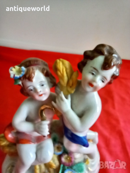 Capodimonte Много Красива Стара Ръчно Рисувана Порцеланова Статуетка ХЕРУВИМИ около 1900г.Перфектна!Маркирана.
