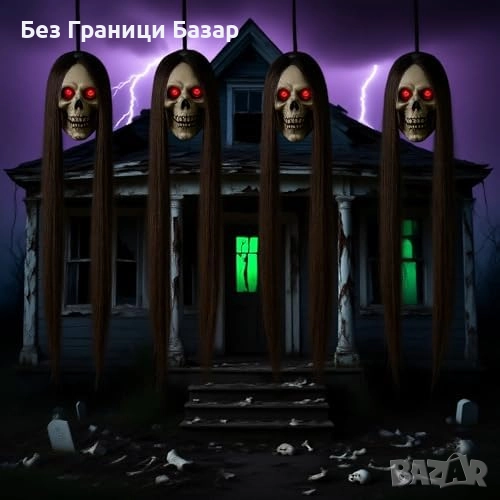 Комплект от 4 страховити скелета с дълги коси и светещи червени очи
