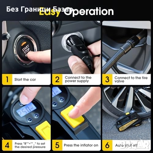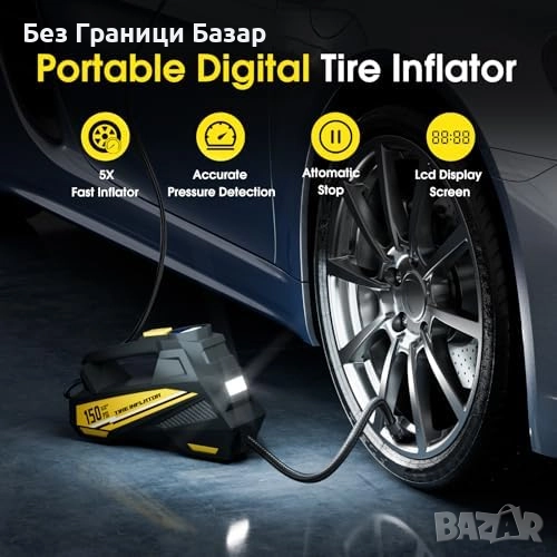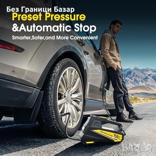 Бързо и лесно напомпване до 150 PSI, подходящо за коли, велосипеди и SUV