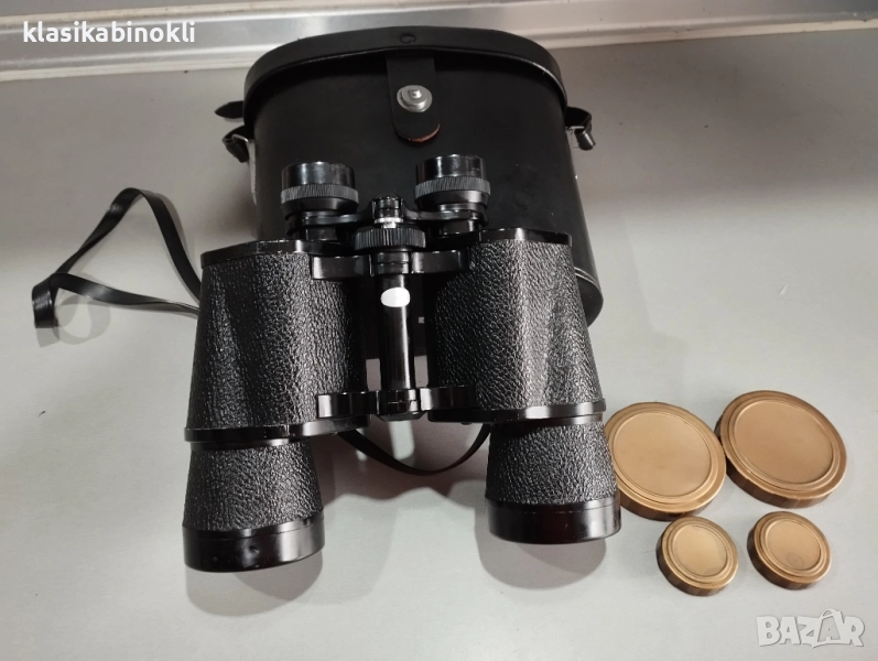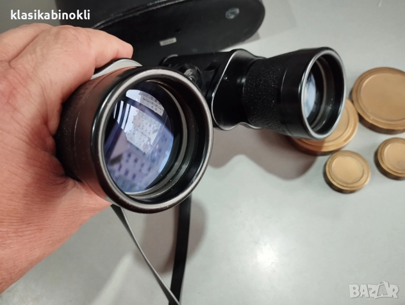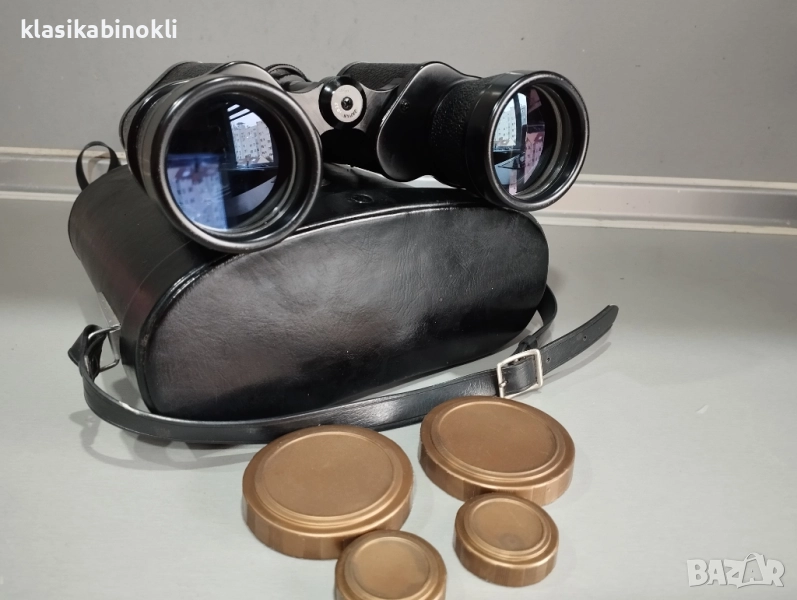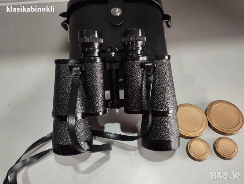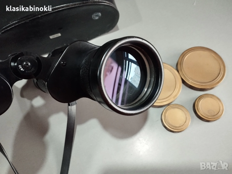 Бинокълът е в комплект с - ОРИГИНАЛНА КОЖЕНА ЧАНТА , РЕМЪЦИ , ОРИГИНАЛНИ КАПАЧКИ