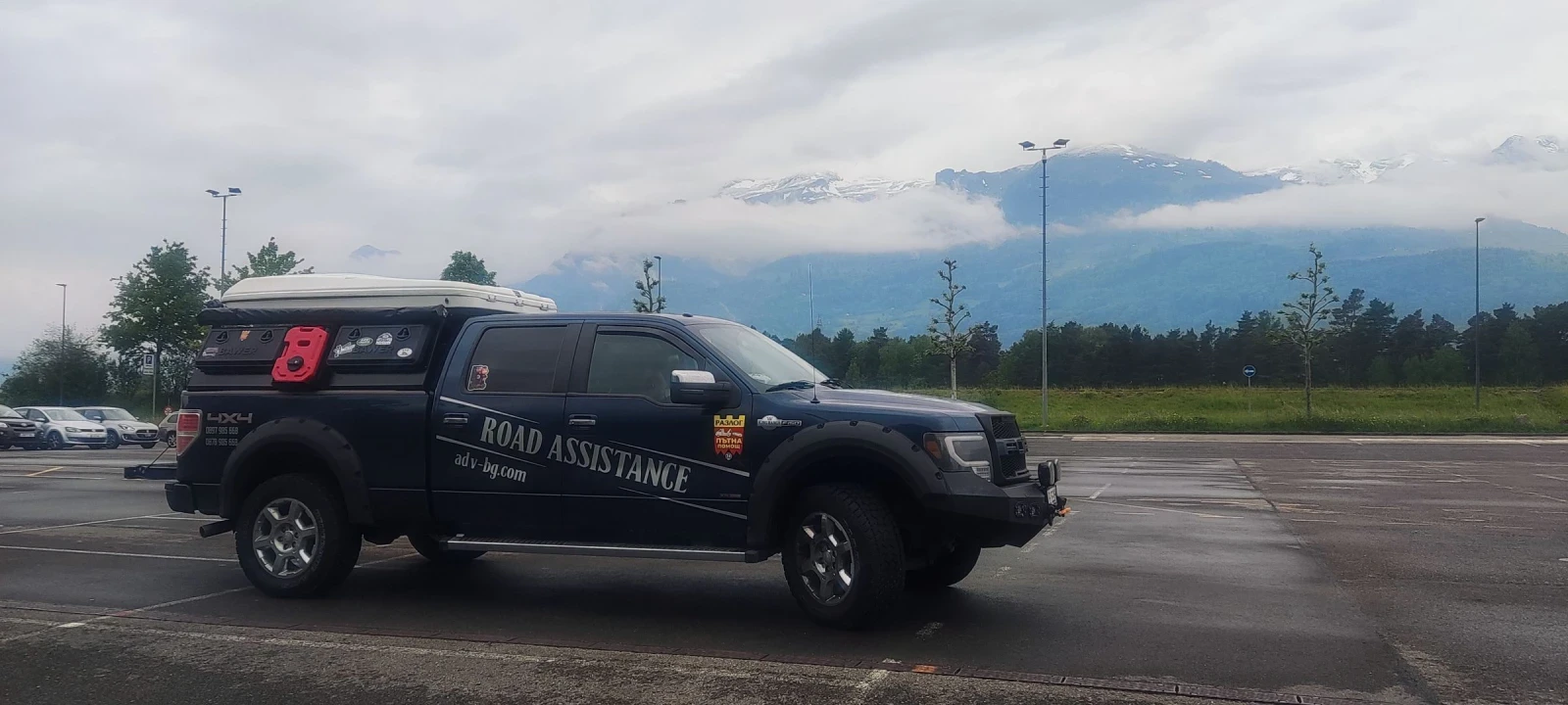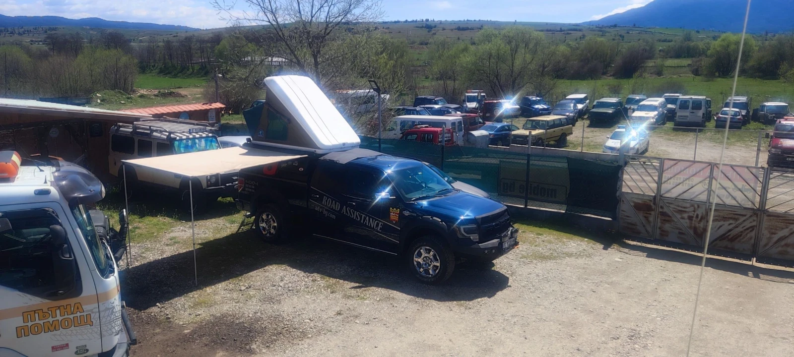 Конструкция за пикап включваща , покривна палатка - Hannibal, тента, куфари за багаж, туби за гориво и вода. Конструкцията е правена за Ford F150, но съм я правил да влиза в щората в отворено положение, т. е. без да я демонтирам, което означава че спокойно ще влезне в по малък пикап. Може да се изработи и по други размери.