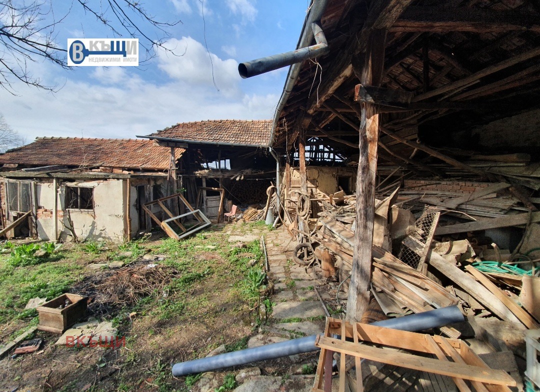 Дворното място е 656 кв.м. (с възможност да стане повече) и в него има голяма работилница с маза под нея и стопански постройки. Къщата е тухла с плоча между етажите и има голям потенциал.