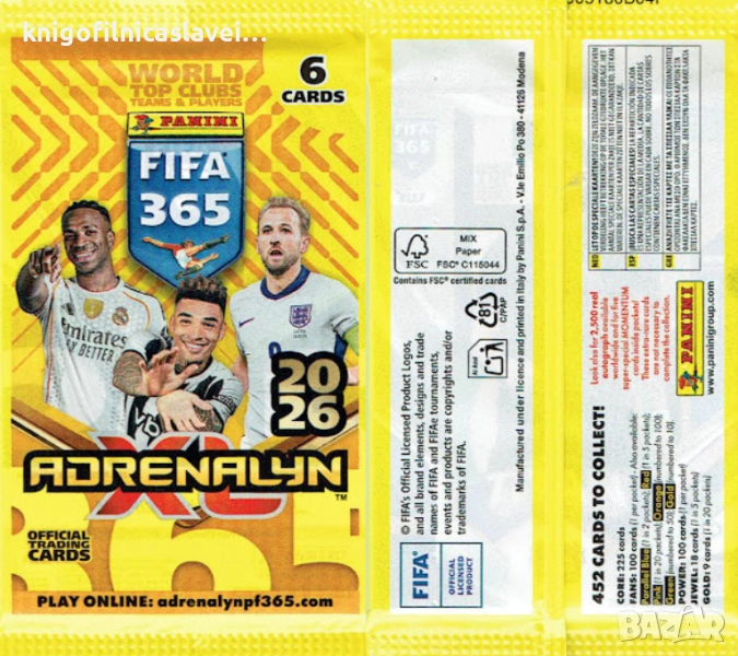 Албумът за карти Адреналин на ФИФА 365 2026 (Панини) е с оригинално име: Panini FIFA 365: 2025-2026. Adrenalyn XL и съдържа колекция от 452 карти.