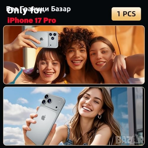 Нов Протектор за камера iPhone 17 Pro закалено стъкло и алуминиев ринг Защита Айфон