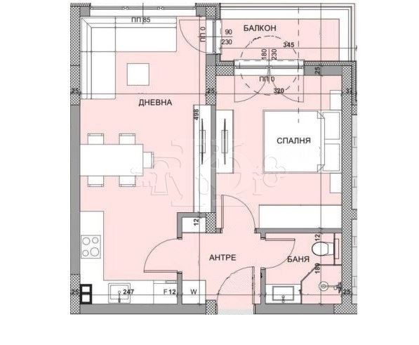 Състои се от антре, всекидневна, спалня, баня с тоалетна и балкон.