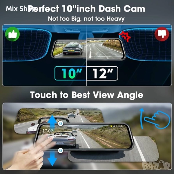 Jansite 10" Mirror Dash Cam Full Touch Screen