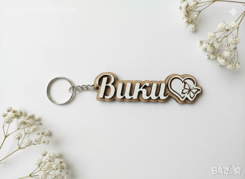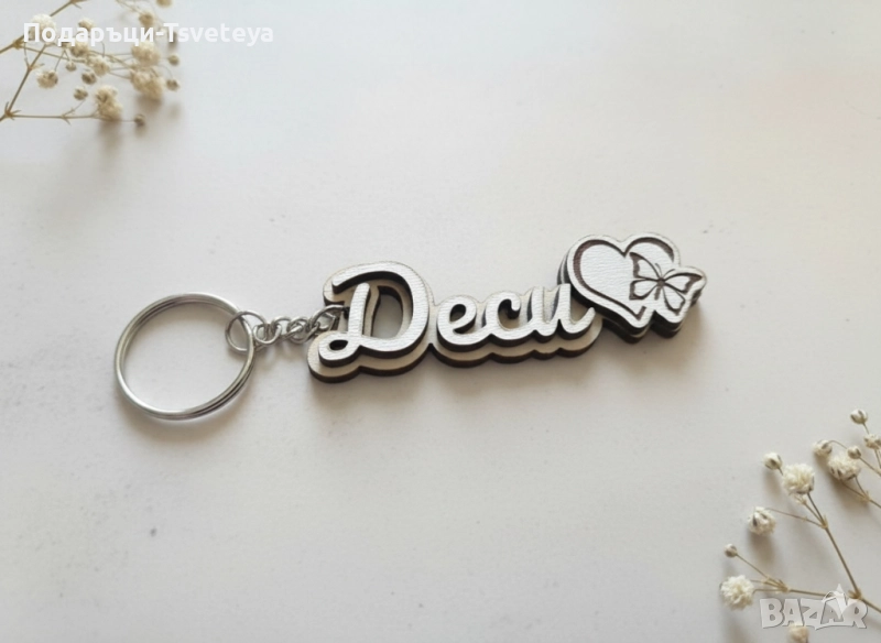 🔑 Персонализиран ключодържател с име Стилен дървен ключодържател, изработен с прецизен лазерен гравир. Перфектен аксесоар за теб или оригинален подарък за близък човек. ✔ Изработва се по поръчка с име по твой избор ✔ Размерът варира според дължината на името ✔ Лек, удобен и издръжлив – подходящ за ежедневна употреба 🎁 Идеален подарък за рожден ден, имен ден, сватба, кръщене или просто за да зарадваш някого специален!