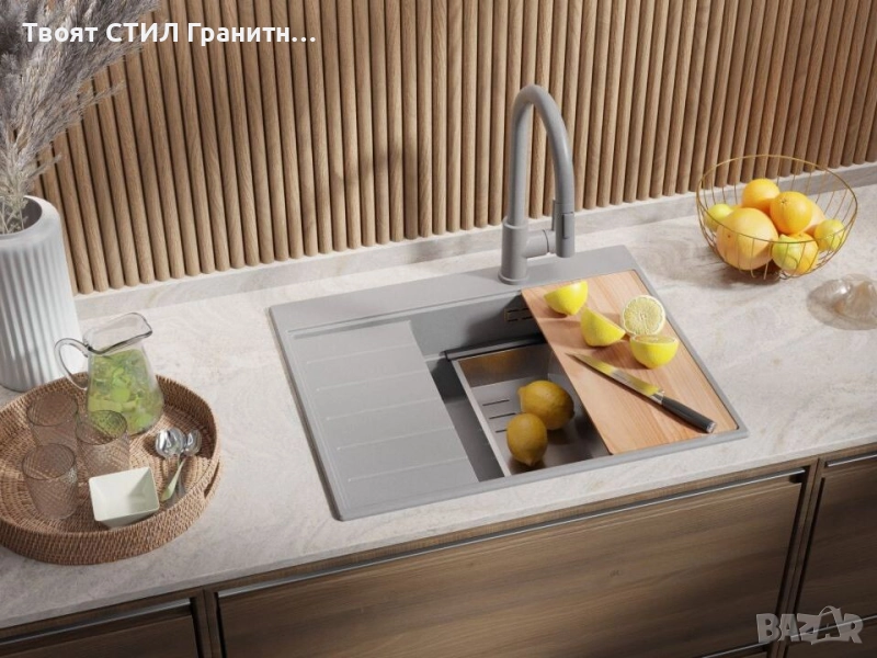 - Издръжлив гранитен композит, устойчив на драскотини, петна и топлина