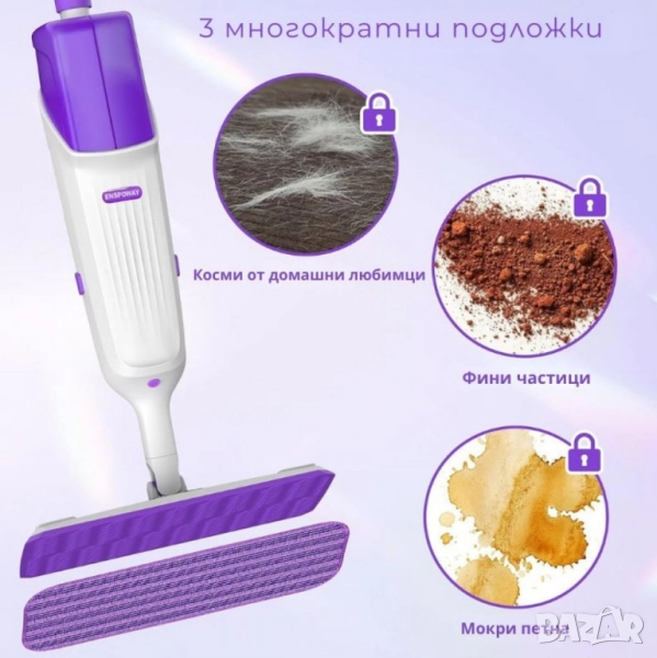 Спрей моп с двоен резервоар ENSPOWAY – ефективно мокро и сухо почистване без усилие