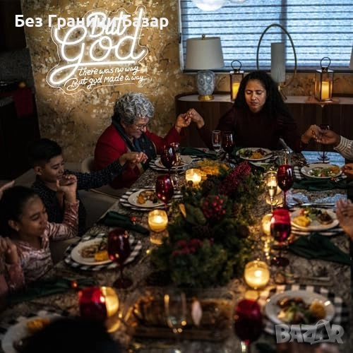 Стилен LED неонов надпис “But God” – модерен акцент за стена