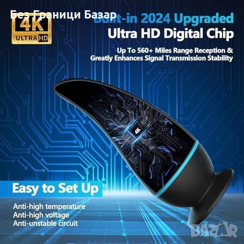 Нова TV антена 560 км HD сигнал с регулируем усилвател и магнитна база