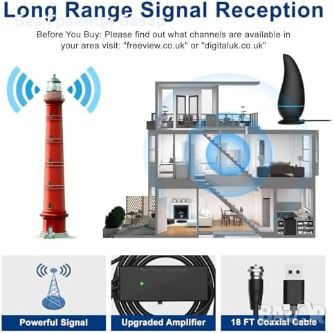 Мощна антена с голям обхват за безплатни канали като BBC, ITV, Channel 4