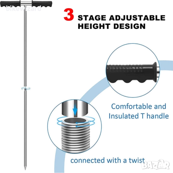 Сонда за почва, сонда за проби от почва, сонди за проби от почва с Т-образна дръжка, регулируема височина 81-122 см, устройство за тестване на проби от почва от неръждаема стомана, комплекти за тестване на почва за вземане на проби от почва, грижа за растения, градина, ферма