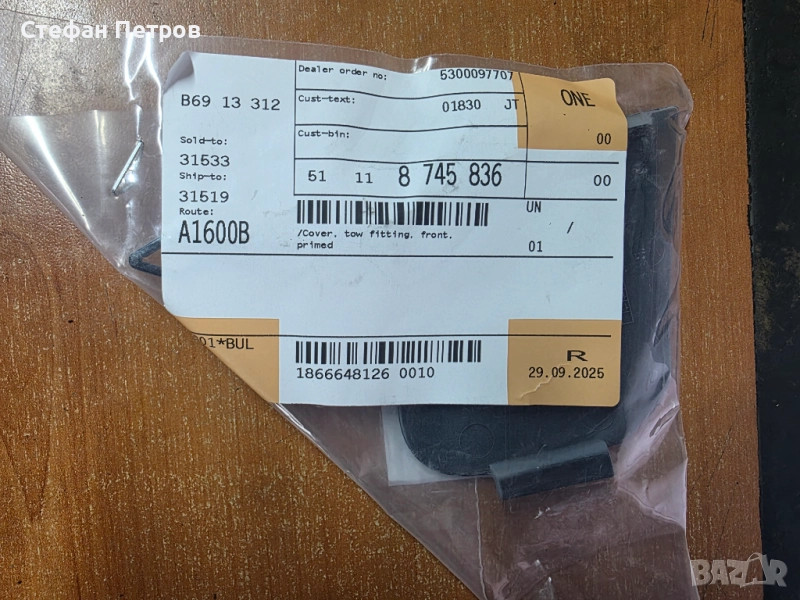 Продавам ново оригинално капаче за кука на М предна броня за BMW 7 серия G11 / G12 Facelift