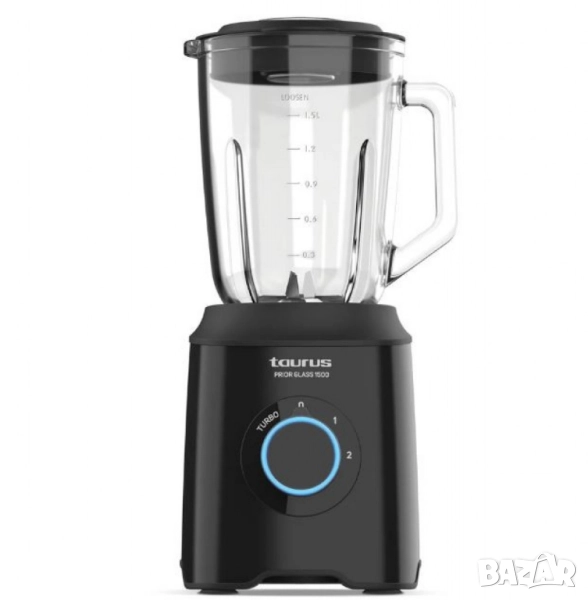 Модел: Taurus Prior Glass 1500; Мощност: 1500W; Кана: Стъклена, 1.8L (1.5L полезен капацитет), градуирана; Скорости: 2 нива + Turbo функция; Ножове: 4 остриета от неръждаема стомана, разглобяеми; Функции: Смилане на лед, приготвяне на смутита, кремове и гранита; Капак: с мерителна чашка 50 мл и отвор за добавяне на продукти; Чучур: за лесно наливане; Сигурност: работи само при правилно поставена кана; Поддръжка: части, подходящи за съдомиялна машина; Стабилност: гумени, противоплъзгащи крачета.