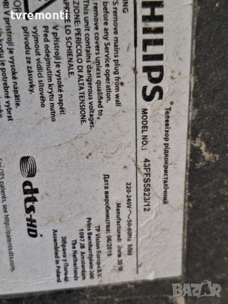 MAIN BOARD ,715G9237-M02-B00-005T,за 43-инчов телевизор PHILIPS Модел 43PFS5823/12 , с дисплей TPT430H3 DUYSHA.G rev.S1CAM. Платката е използвана, но гарантирано работеща, демонтирана от телевизор със счупен дисплей. Тествана е от нашия техник.