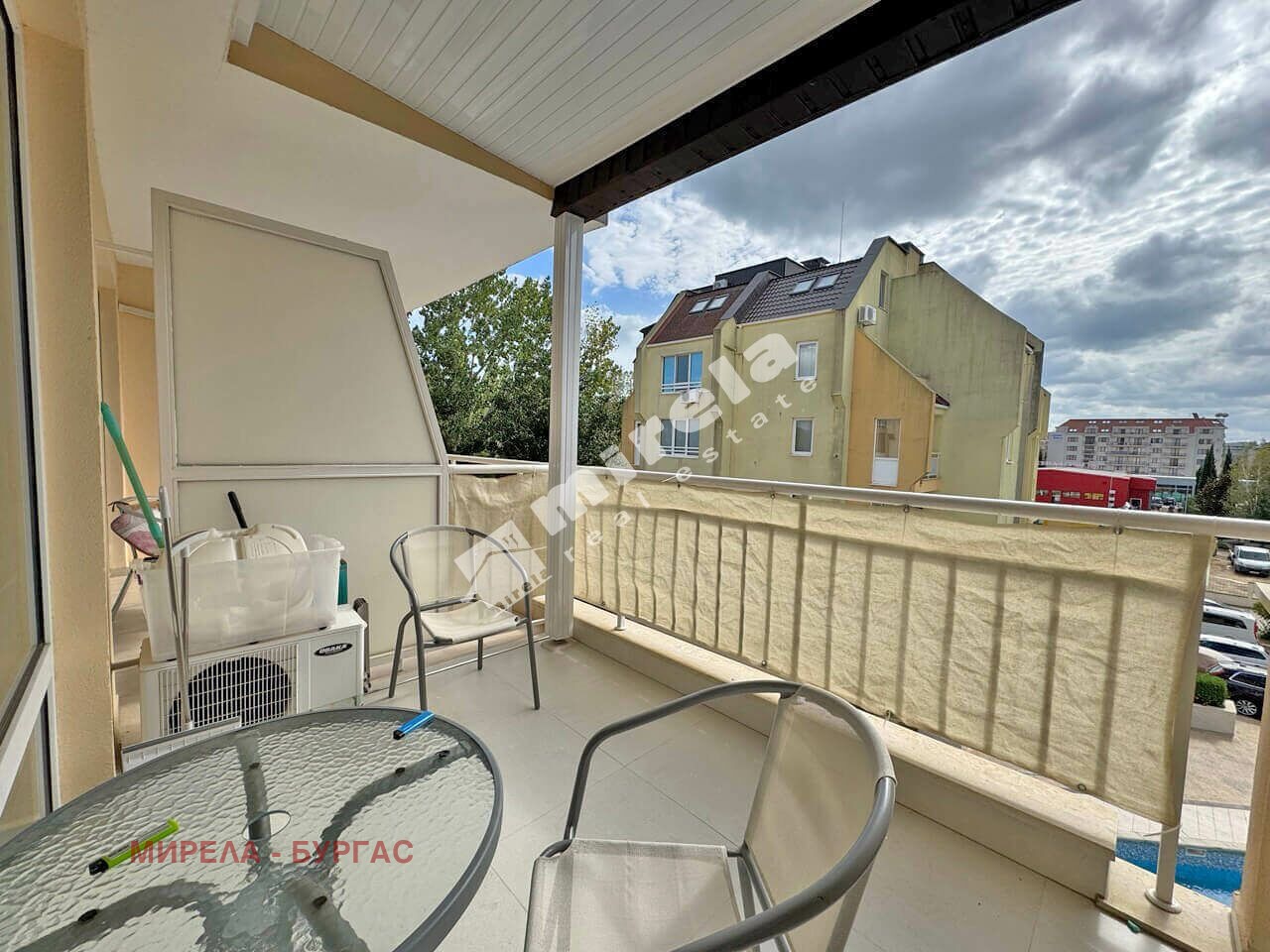 Имотът има жилищен статут; Има надземно паркомясто; Сградата има асансьор; Продава се с обзавеждане, което подлежи на уточнение; Има физическа охрана; ЕТАП НА СТРОИТЕЛСТВО: разрешение за ползване (Акт 16); ОТОПЛЕНИЕ: климатик; Има 1 балкон/тераса; С довършителни дейности; Има такса поддръжка; Непреходен; Целогодишно ползване; ВИД СТРОИТЕЛСТВО: тухла; ГОДИНА НА СТРОИТЕЛСТВО: 2000 г.; ИЗЛОЖЕНИЕ: гледка към басейна; СПАЛНИ: 1; БАНИ: 1; ДОГРАМА: Алуминиева