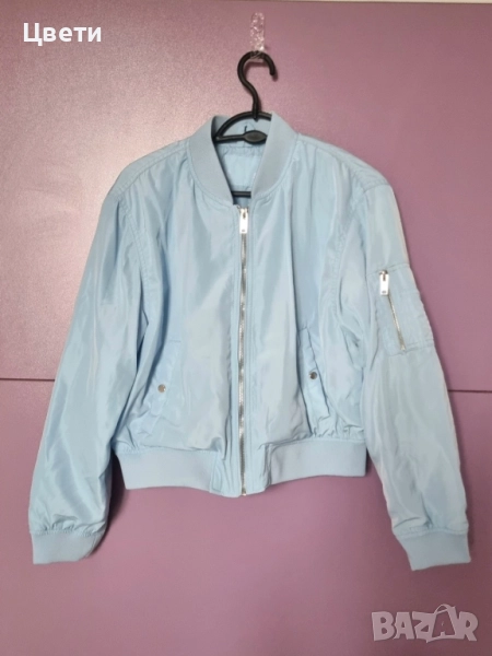 Светло синьо късо яке, тип бомбер, не е носено, размер М, 20 лв.