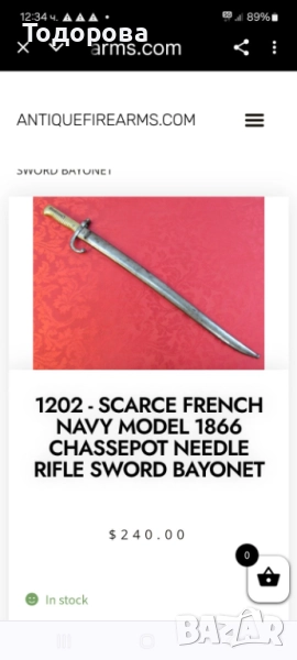 Френски байонет, марка шаспо, много добро състояние,1873г.нож,кортик,щик,сабя,ятаган, 390 лв → Обява 51920866