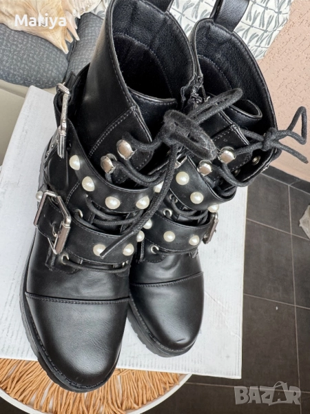 Дамски боти черна изкуствена кожа, размер 37. Подходящи за есенно зимните месеци. Без забележки . Стилни и модерни.