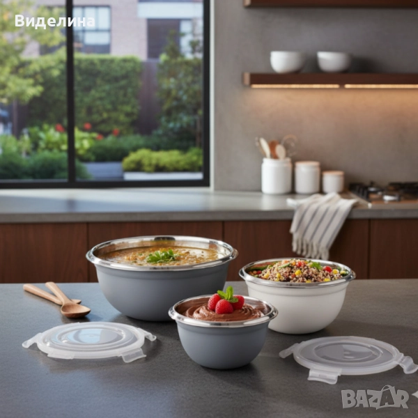 Комплект GOURMETmaxx купи от неръждаема стомана с капаци – 3 в 1 за съхранение и свежест → Обява 51921065
