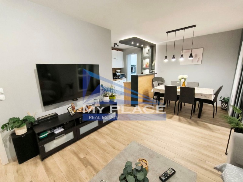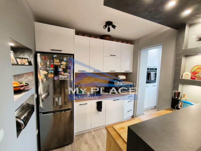 Агенция My Place продава тристаен ТУХЛЕН апартамент СЛЕД ОСНОВЕН РЕМОНТ с площ 86 кв.м - кв. Център. Състои се от: Г-образен коридор, просторен дневен тракт с кухня и трапезария с бар плот, ДВЕ спални, едната с дрешник, ДВЕ тераси, едната, от които е обособена като лятна градина, перално помещение и килер, баня и тоалетна са в отделни помещения. Има ВЪТРЕШНА и ВЪНШНА ИЗОЛАЦИЯ, изцяло подменена дограма. Подовите настилки са естествен паркет и теракот. Предлага се ОБЗАВЕДЕНО с изключение на някои ел. уреди.