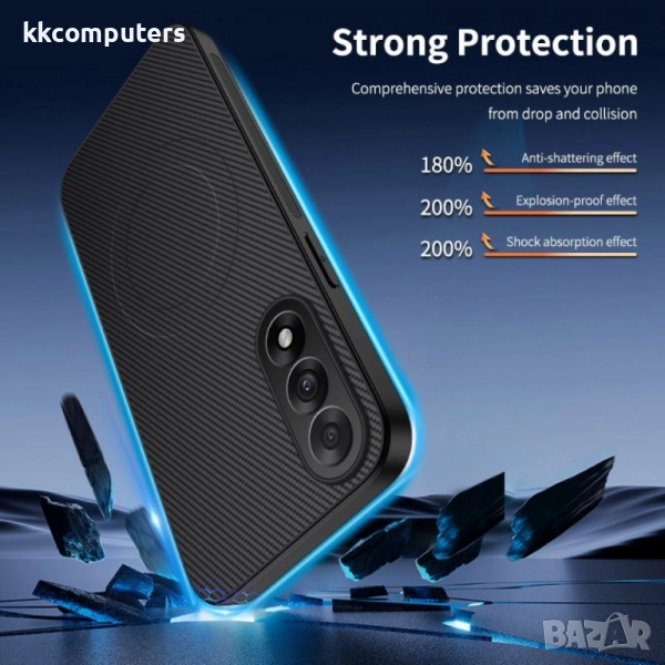 - Стилен дизайн: Текстурата от въглеродно влакно придава модерен вид на Вшия телефон. Повърхността е противоплъзгаща и гарантира удобен и сигурен захват.