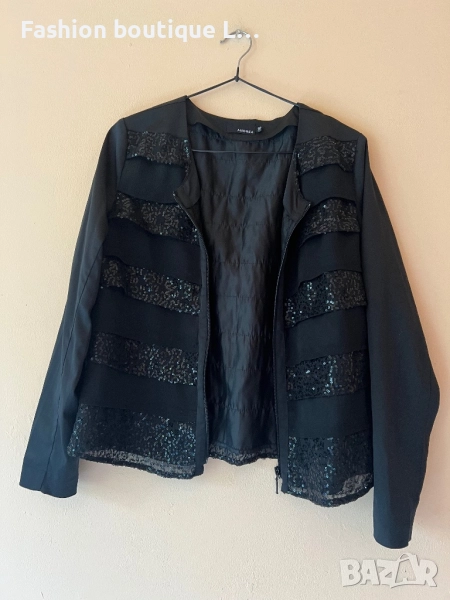Черно есенно яке с пайети на райета 36 размер с цип отпред се закопчава 🖤🖤🖤🖤🖤🖤🖤🖤 → Обява 51921379