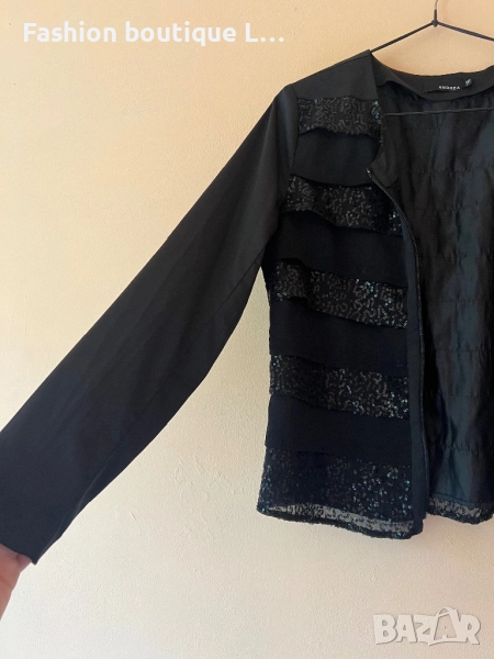 Черно есенно яке с пайети на райета 36 размер с цип отпред се закопчава 🖤🖤🖤🖤🖤🖤🖤🖤
