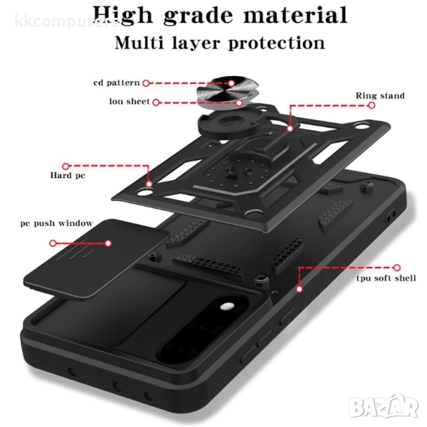 - Плъзгащ капак за камерата: Интегриран, лесно плъзгащ се капак защитава най-цененият елемент на телефона Ви – камерата. Предпазва лещата от драскотини, прах и отпечатъци, гарантирайки перфектни снимки всеки път.