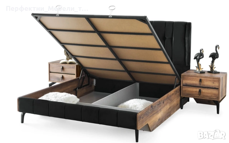 Легло с тапицерия в черна мека дамаска 160/200 с механизъм-166/207/h34