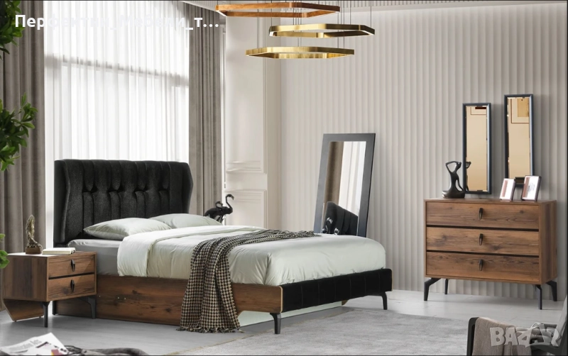 Наличен цял комплект с обзавеждане за спална стая..Изчистена визия за спално помещение,меки и стилни визуални линии на обзавеждането в спалнята в комбинация с модерна дървесна нишка.