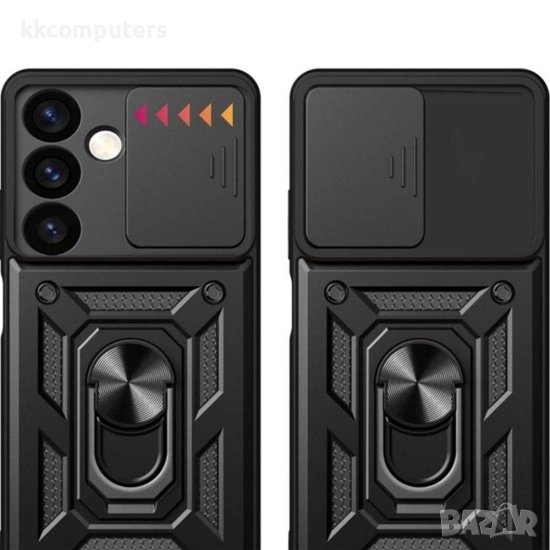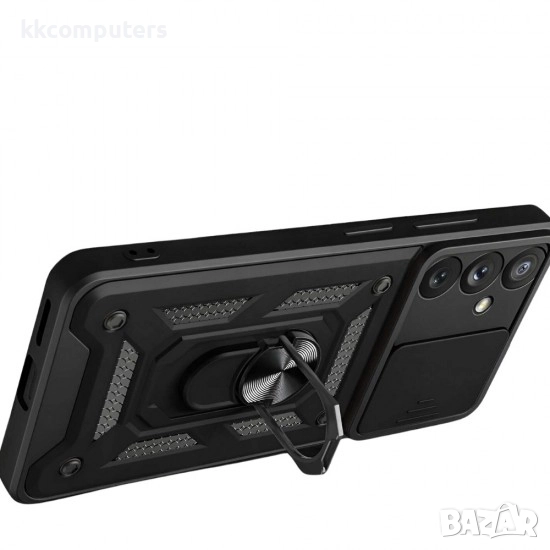 Силиконов твърд кейс bSmart Defender Slide, За Samsung Galaxy S25 FE, Черен