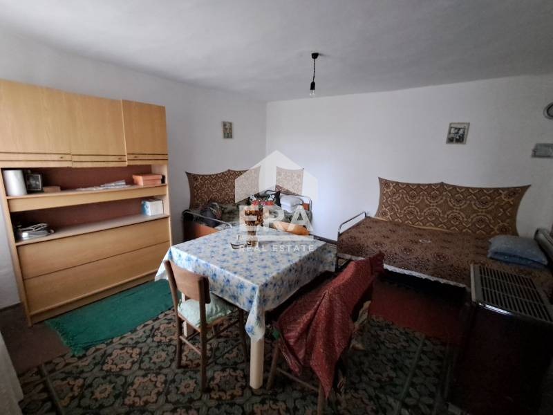ЕРА Варна Тренд предлага за продажба едноетажна къща с допълнителни сутеренен етаж, пристройка и стопанска сграда, с голям двор, в центъра на с. Крумово, обл. Варна. РЗП на всички сгради (законни) е 180 кв.м, а дворното място е с площ 1 660 кв.м. На първия етаж има две стаи, на сутеренния етаж има две стаи и в пристройката/лятна кухня също има две стаи. Санитарният възел е външен. В двора има мивка. Имотът е с лице на асфалтова улица.