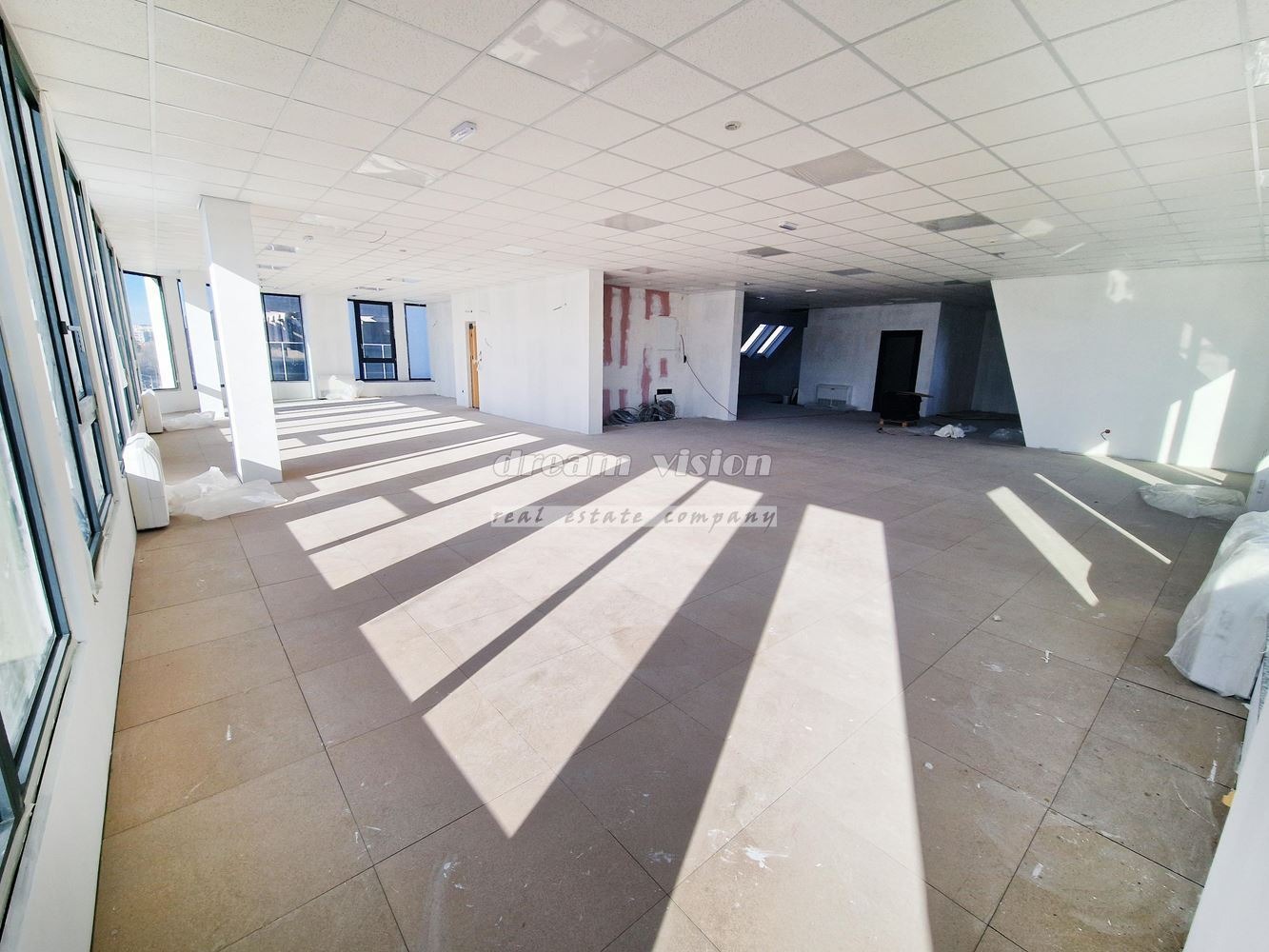 ДРИЙМ ВИЖЪН НЕДВИЖИМИ ИМОТИ Отдава под наем офис в луксозна офис сграда клас А. Разположена е в близост до МОЛ София и метростнация Константин Величков. На партерното ниво има рецепцията и приемна, която се завършва с бразилски гранит, индиректно осветление, аранжирано с много зеленина и произведения на изкуството Офиса е самостоятелен на етажа и се състои от просторно помещение тип open space, кухня, мъжка и дамска тоалетна, сървърно помещение,тераса. Възможност за преустройства спрямо изискванията на наемателите. Oфис площите са с двоен под, окачен таван - Армстронг, стените са със силиконов латекс и светла височина на офиса 3 метра.Сградата е изпълнена с окачена каменна фасада и дограма на Рейнърс Белгия, със стъклопакет от най-висок клас с аргон и сребърно покритие за най-добра топло и слънце защита.Луксозни общи части,настилки гранит. Два големи асансьора за 14 човека. Контрол на достъпа на всеки етаж, видеонаблюдение.VRF система за централна климатизация на Дженерал Фуджицу - Япония. В сградата предлагаме и други офис площи. Възможност за наемане на паркоместа. Посочената цена е без ДДС Оферта в агенцията 11108. Всички наши обяви ги работим с колеги. Още наши оферти може да намерите на www. dreamvision. bg. Телефони за връзка: 02/421 96 35 ; 0886 13 22 91 Димитър Георгиев.