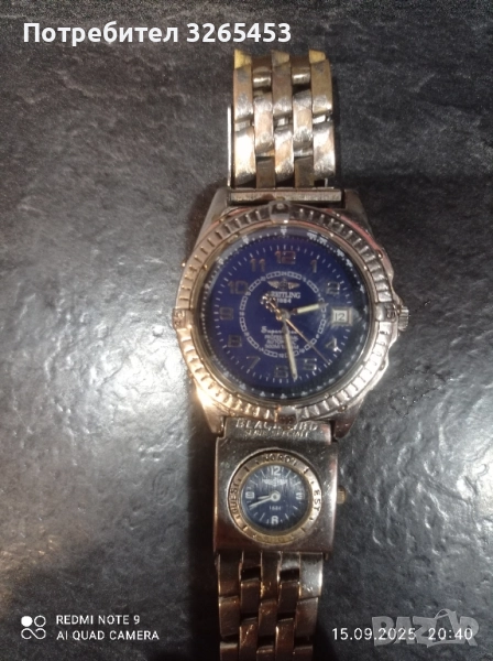 предлага се мъжки часовник марка BREITLING!! видимо доста носен видимо не отварян.Автоматик. Доста тежък!! повече инф при запитване.