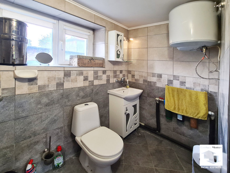 Интериорът на къщата е завършен с качествени материали PVC дограма, дървени врати и току-що боядисани стени. Подовите настилки са комбинация от теракот и мокет, създавайки топла и приветлива атмосфера. Вторият етаж разполага с външна изолация за допълнителна енергийна ефективност.