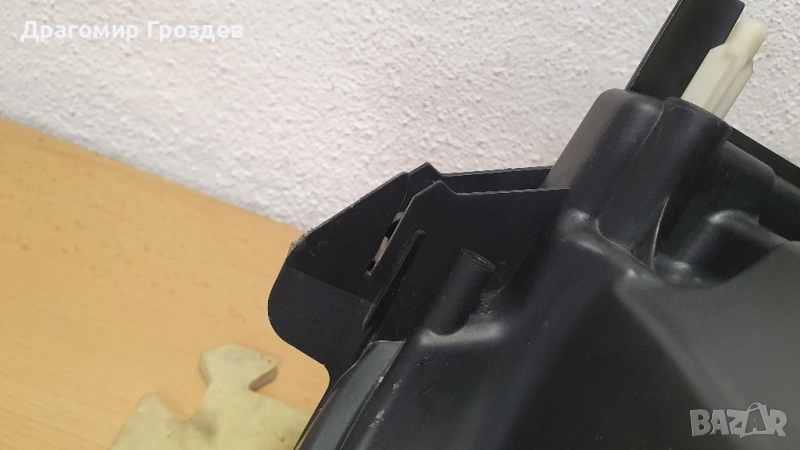Захвата към маската е подменен с Оригинален и липсва малка част от долния водач.