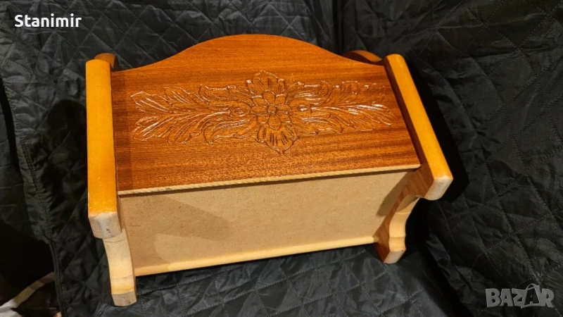 Поставка с дърворезба размери височина 43см,дължина 41 см, широчина 27 см,широчина на всяко отделение 11 см. В отлично състояние.