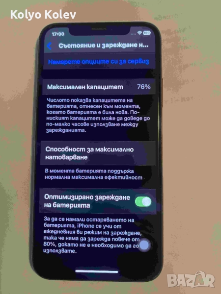 добро състояние – 76% от капацитета. По дисплея, гърба и страничните ръбове няма охлузвания или други