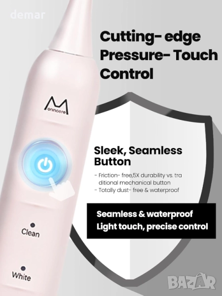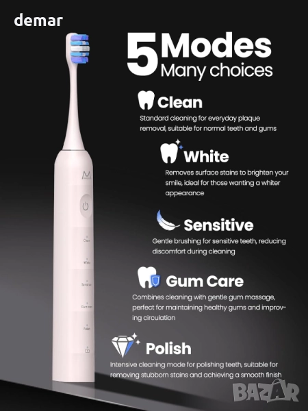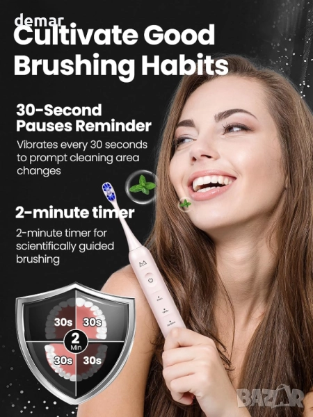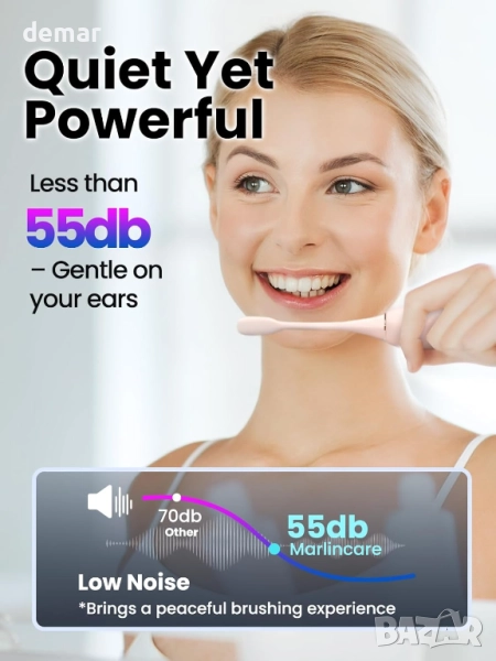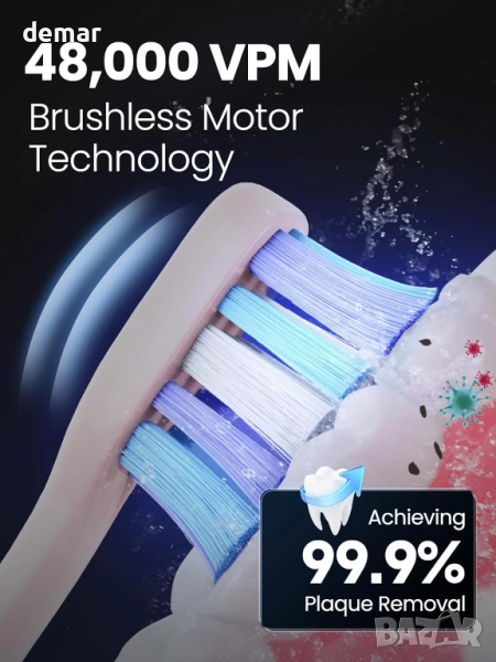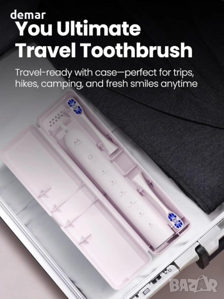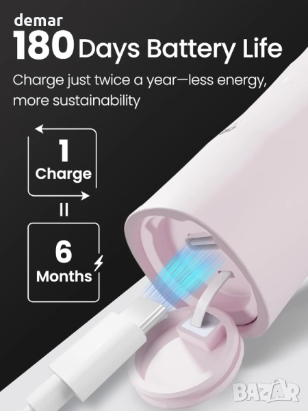 Тази акумулаторна електрическа четка за зъби предлага до 180 дни употреба с 4-часово зареждане през USB-C и се предлага с калъф за пътуване за удобство. Тя разполага с пет режима на почистване с интелигентен 2-минутен таймер и 30-секундни интервали за насърчаване на равномерното миене на зъбите. Мощната звукова технология осигурява 48 000 вибрации в минута за ефективно премахване на плаката, като същевременно остава нежна към венците. Водоустойчивият ѝ дизайн IPX8 позволява безопасна употреба под душа, а ултратихата работа гарантира комфортно изживяване. Издръжливото, чувствително на натиск управление с един бутон прави превключването на режимите лесно, а здравата конструкция е прахоустойчива, водоустойчива и дълготрайна.