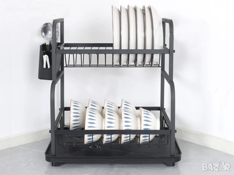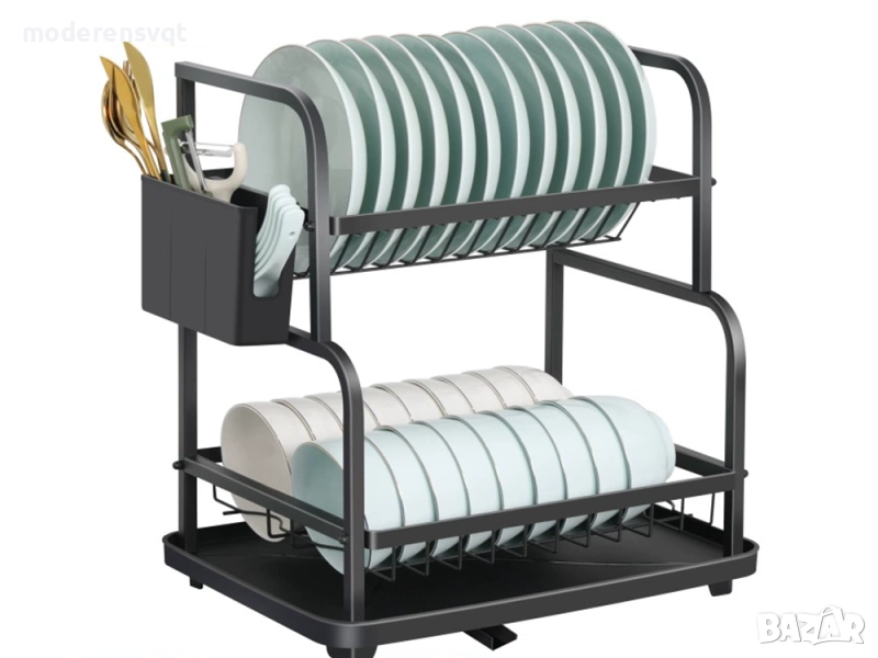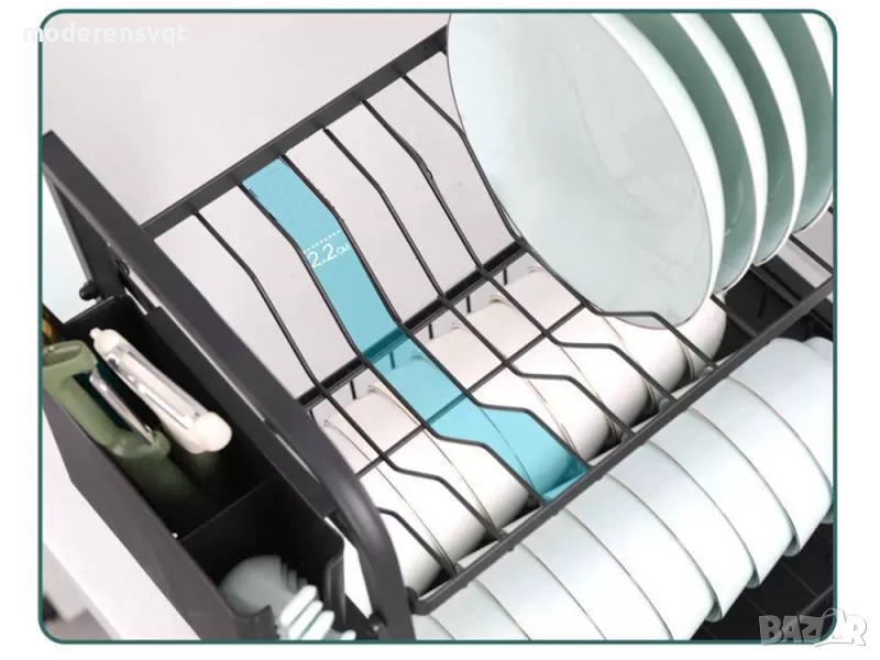 Добре обмисленият дизайн позволява удобно сушене на цялата гама от съдове - от чинии и чаши до прибори за хранене и дъски. Изправената форма осигурява максимално използване на пространството, без да е необходимо да се заема целият работен плот. Това е решение, което съчетава практичност с модерен, естетичен вид.