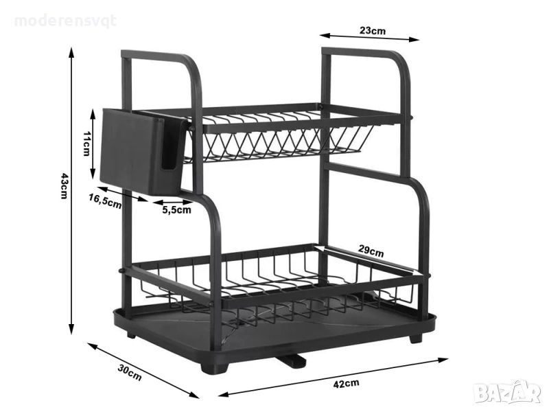 Сушилник за чинии на 2 нива с улей за мивка черен