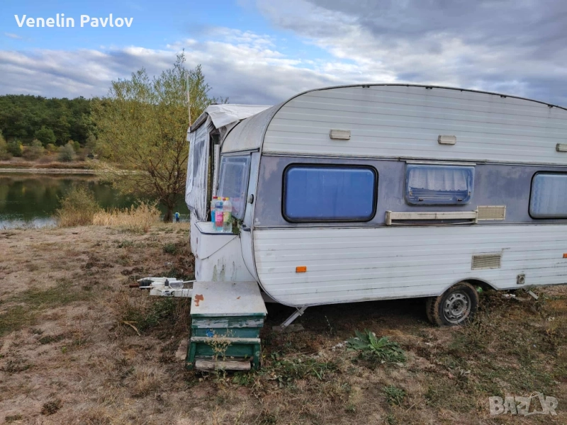 Продавам стационарна каравана с дължина 4 метра. Караваната разполага с 2 спални легла, хладилник и готварска печка. Наличен е теглич, но караваната е без документи. Състоянието е добро, с леки външни забележки, нормални за годините ѝ.