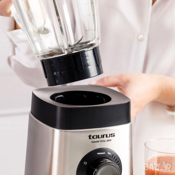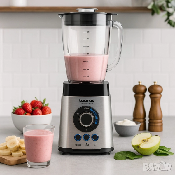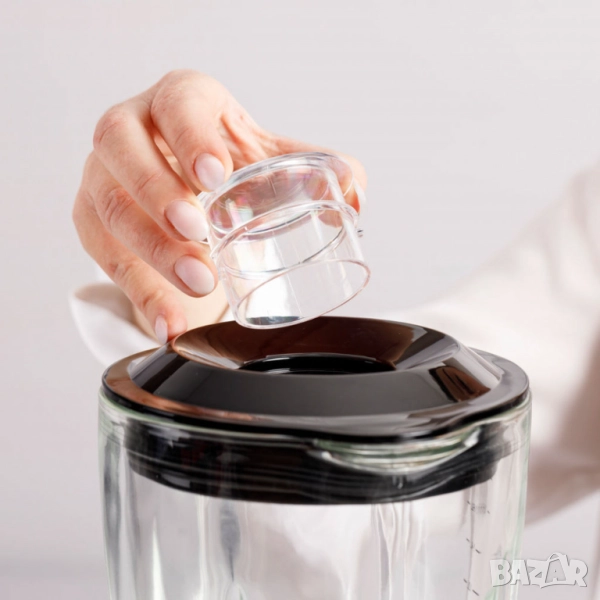 Функции: Регулируема скорост, турбо режим, програми за смути и лед, отвор за пълнене, мерителна чашка 50 мл;