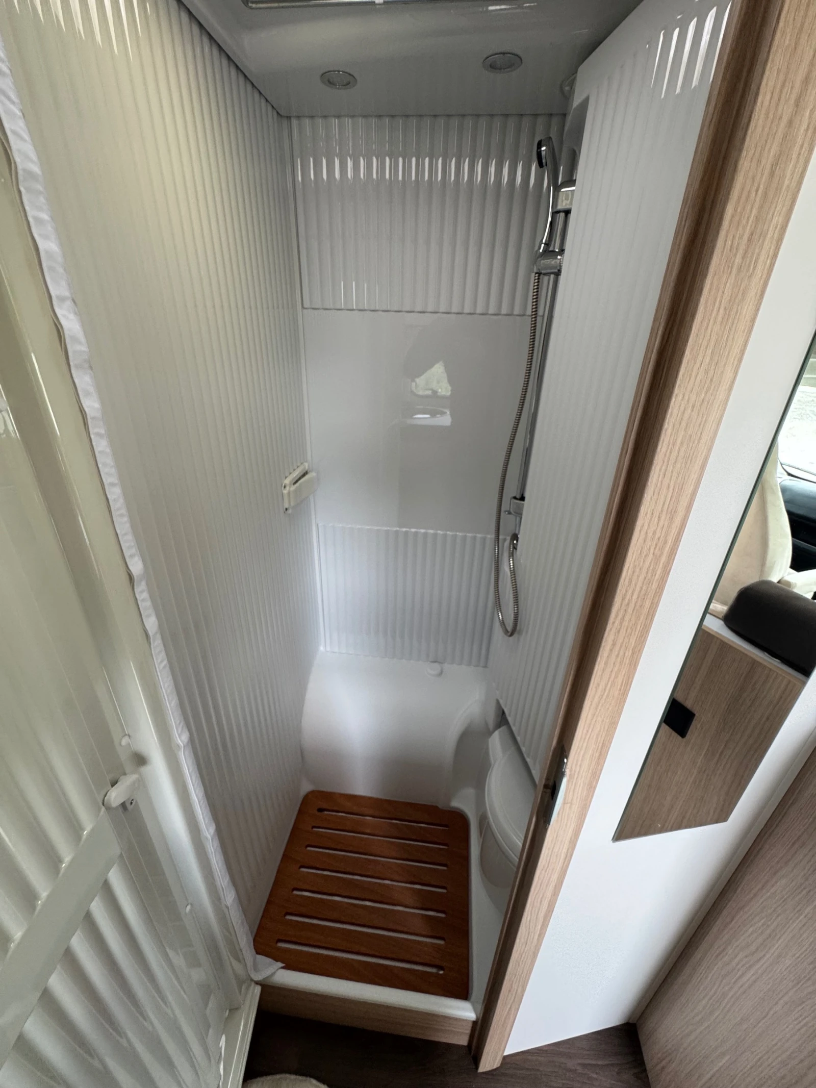 Нов, неупотребяван кемпер до 3. 5 т управлява се с любителска книжка 145л резервоар за чиста вода -135л резервоар за отпадъчни води -Truma Combi 6 газово отопление ABS ESP Ел. стъкла и огледала с подгрев Централно заключване Заден гараж Кожен волан Сервоуправление Темпомат Тоалетна Централно заключване