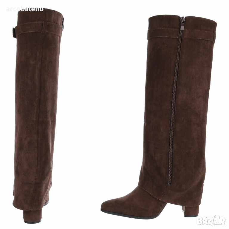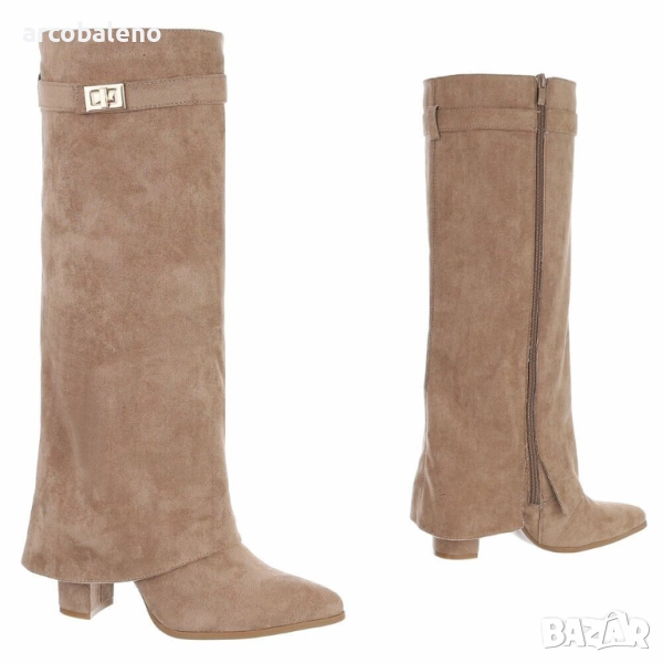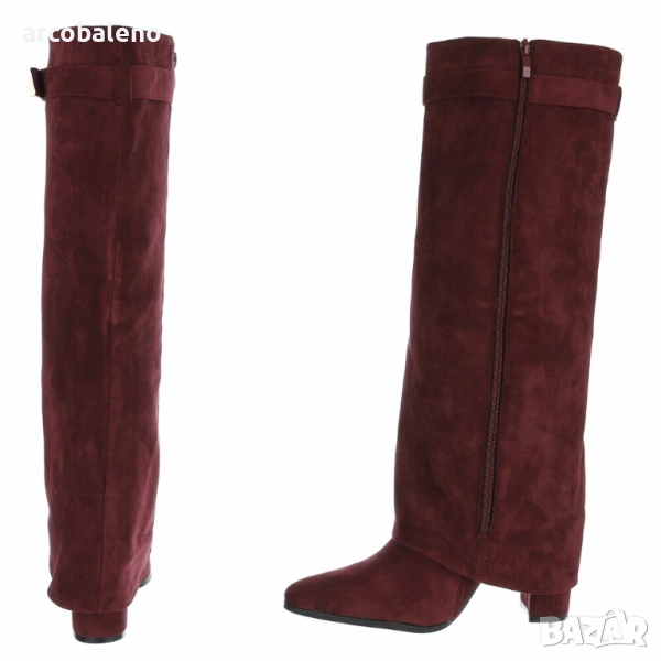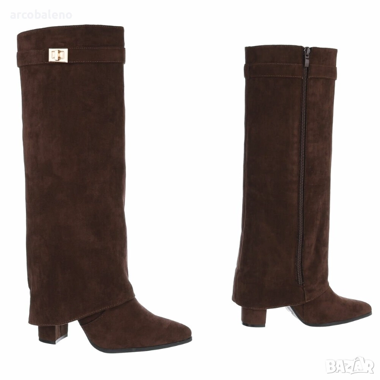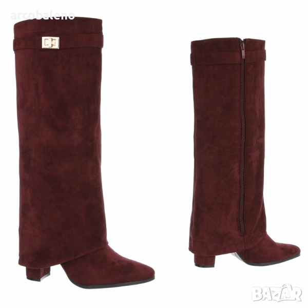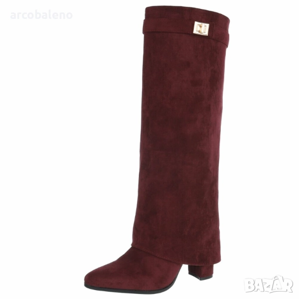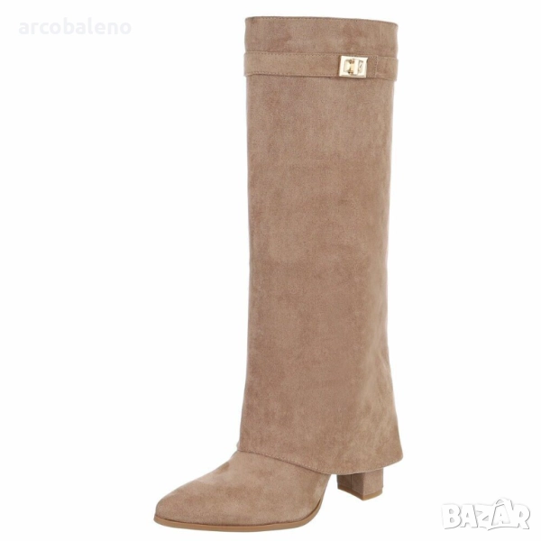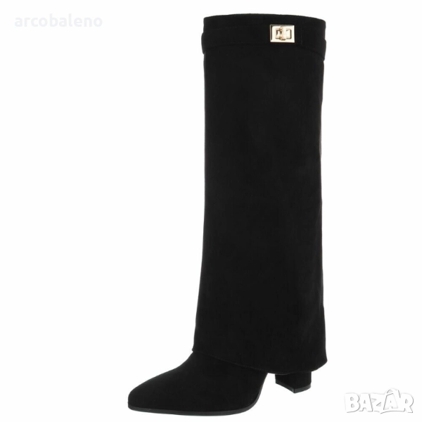 Открийте перфектния спътник за жени, които държат на стила: тези елегантни обувки до коляното, които добавят нотка блясък към вашите тоалети. Изработени от висококачествени материали, те впечатляват не само със своята изтънчена изработка, но и с внимателно обмислените си детайли, които ги правят идеалната обувка за множество поводи. Удобният блоков ток осигурява стабилност и комфорт, позволявайки ви да ги носите удобно през целия ден. Тези обувки са стилен избор за по-хладните месеци, идеални за есенни разходки, елегантни вечерни събития или модерни ежедневни визии. Независимо дали сте в офиса, на вечеря или на среща с приятели, винаги ще направите модно изявление с тези обувки. Те са насочени към жени, които държат на модата, ценят стила и комфорта и са готови да издигнат тоалетите си на следващото ниво. Поглезете се с тези универсални обувки, които блестят както в свободното ви време, така и при специални поводи.