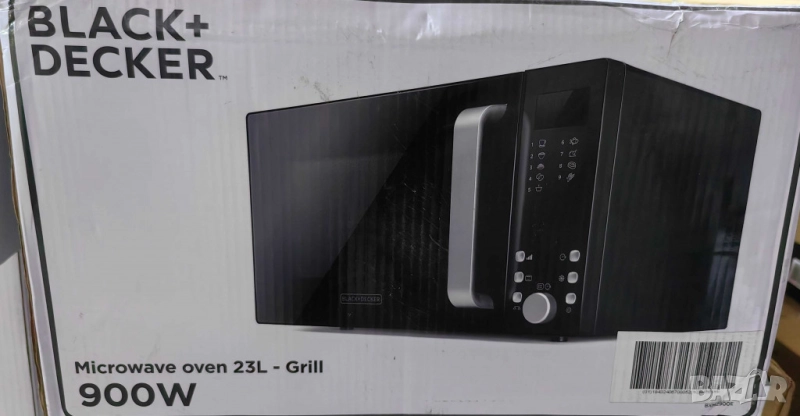 Микровълнова с грил Black+Decker – 23L, 900W, 9 автоматични програми, 5 нива на мощност и детска защ