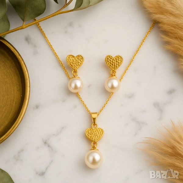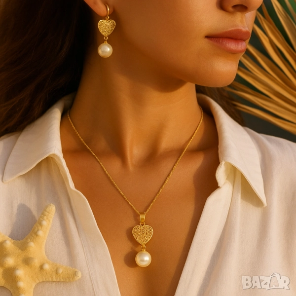 Модерен комплект бижута с перли и сърце
