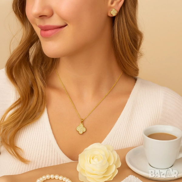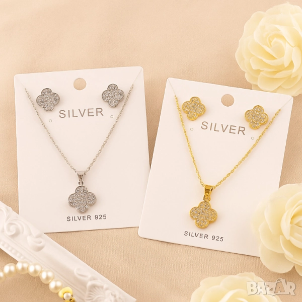 Функции: Елегантно колие + обеци в еднакъв дизайн, избор между златисто и сребристо покритие;